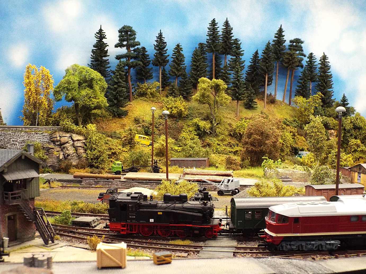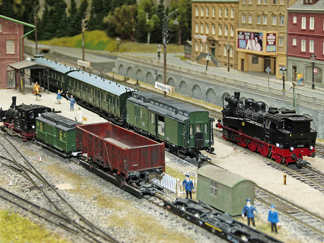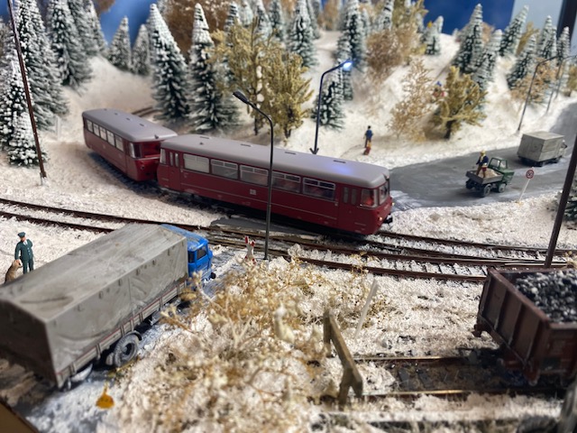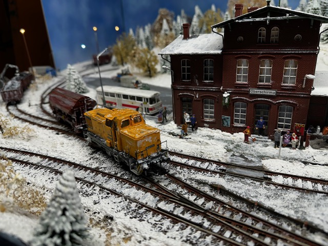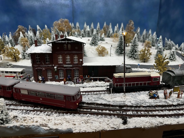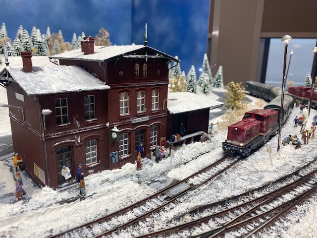 gemeinsam mit befreundeten Modellbahnclubs und Freunden sehenswerte Modelleisenbahnen und Diorahmen